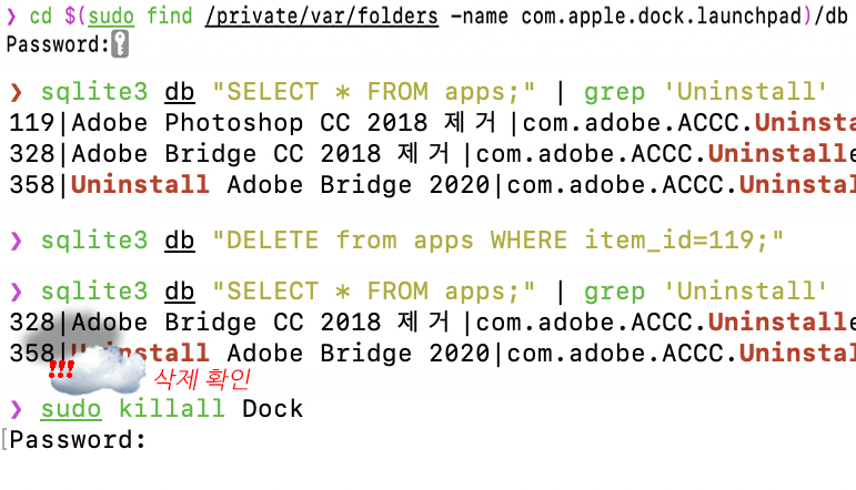 sqlite3 db "SELECT * FROM apps;" | grep ['아이콘 이름 전체' or '아이콘 이름 일부']