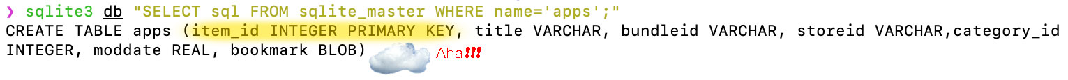sqlite3 db "SELECT * FROM apps;" | grep ['아이콘 이름 전체' or '아이콘 이름 일부']